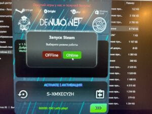 После запуска игры нужно перевести Steam в автономный режим. (Все последующие запуски делаем через DenuvoNET Launcher выбирая Offline запуск)