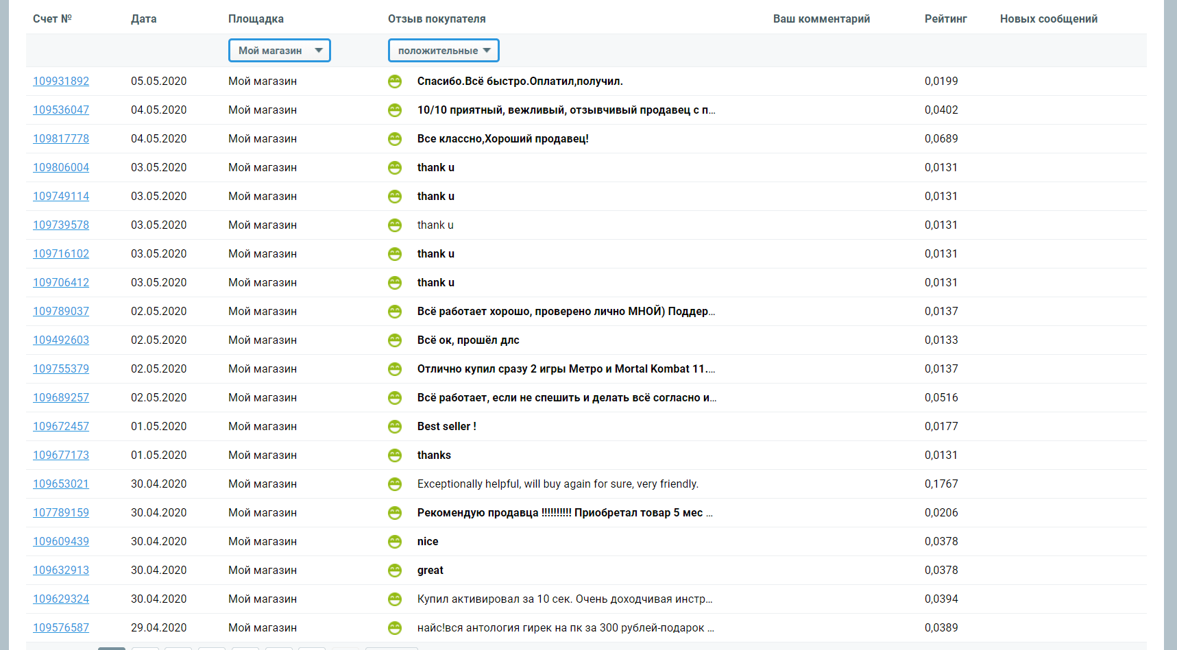 После каждого описания товара следуют отзывы покупателей. Заметьте пожалуйста: отзывы могут оставлять только покупатели (совершившие успешную покупку).