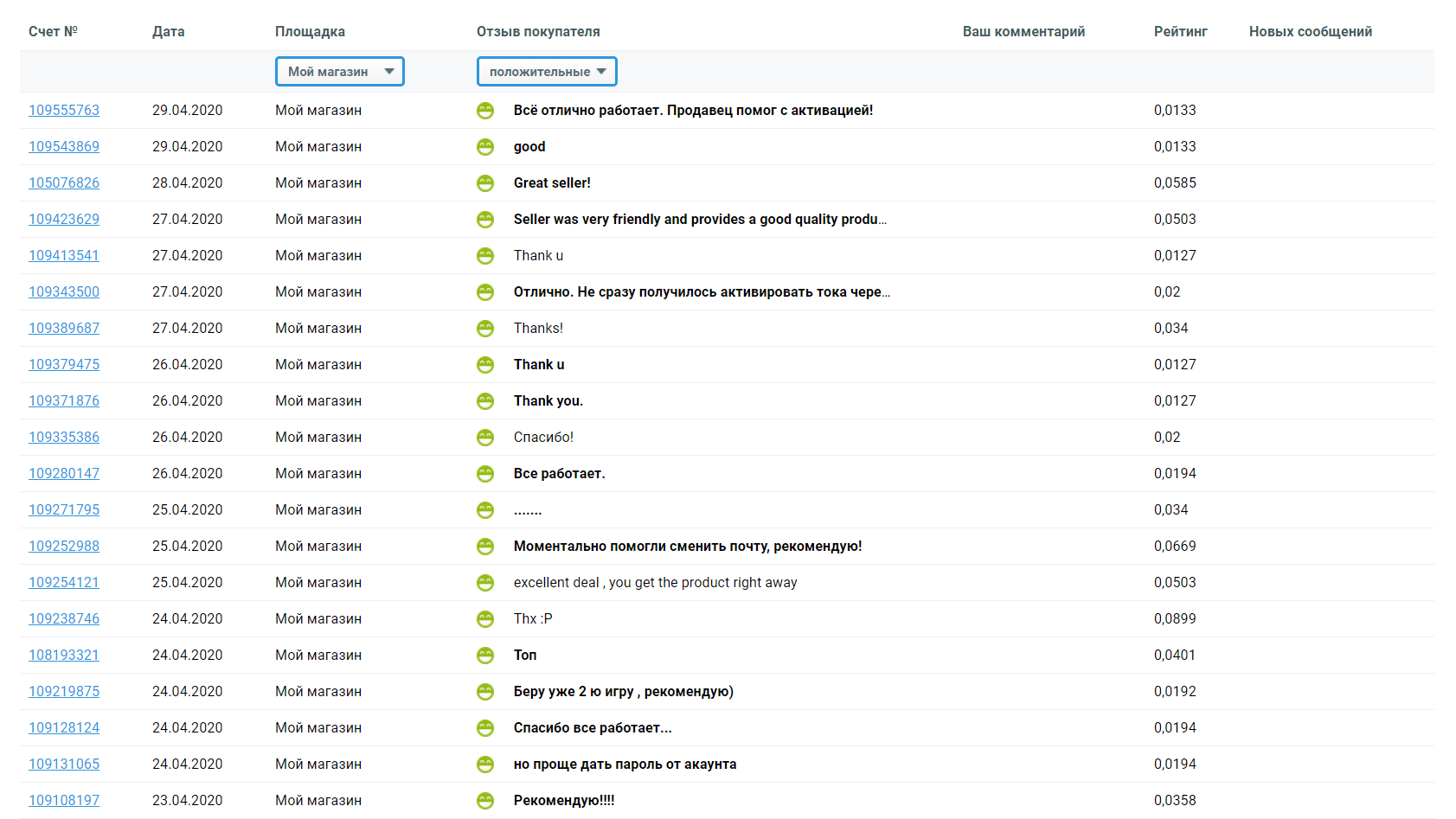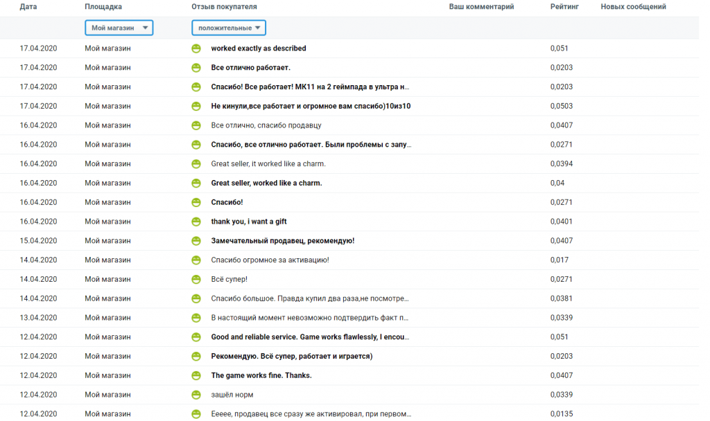 После каждого описания товара следуют отзывы покупателей. Заметьте пожалуйста: отзывы могут оставлять только покупатели (совершившие успешную покупку).