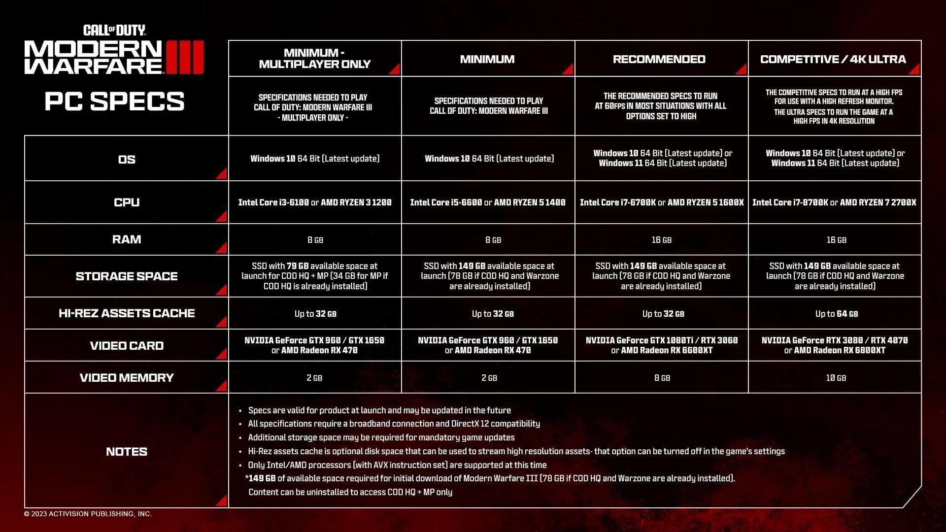 -- Облик исполнителя Гоуста 'Зомби'*****Фактическое игровое время может меняться с учетом возможных сбоев и разницы в часовых поясах.АДАПТИРУЙТЕСЬ ИЛИ УМРИТЕ В БОРЬБЕ С МОЩНОЙ УГРОЗОЙВ прямом продолжении игры Call of Duty®: Modern Warfare® II капитан Прайс и ОТГ-141 противостоят величайшей угрозе. Ультранационалистический военный преступник Владимир Макаров распространяет свою власть по всему миру, заставляя ОТГ-141 сражаться, как никогда раньше.ПРИШЛО ВРЕМЯ СВОДИТЬ СТАРЫЕ СЧЕТЫ И НАЧАТЬ НОВЫЕModern Warfare® III отмечает 20-летие Call of Duty® одной из величайших когда-либо собранных коллекций сетевых карт - как популярных, так и совершенно новых. Все 16 стартовых карт из оригинальной Modern Warfare® 2 (2009 г.) были модернизированы новыми режимами и геймплейными функциями, и будут доступны при запуске, а более 12 совершенно новых основных карт 6х6 появятся в течение различных сезонов после выхода игры.СОВЕРШЕННО НОВЫЙ ОТКРЫТЫЙ МИР ЗОМБИВпервые объединитесь с другими отрядами, чтобы выжить и сразиться с огромными ордами нежити на самой большой зомби-карте Call of Duty®. Режим 'Зомби' в Modern Warfare® (MWZ) представляет новую историю от Treyarch с миссиями, основными игровыми зомби-функциями и секретами, которые необходимо раскрыть.