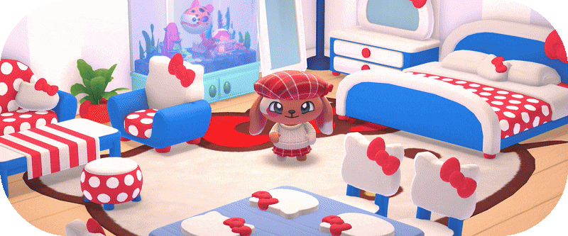 А еще можно ремонтировать домики и украшать их, чтобы привлечь на остров новых гостей, например Мимми, сестру-близняшку Хэлло Китти. Эти гости могут открыть особые задания и даже целые новые истории!
