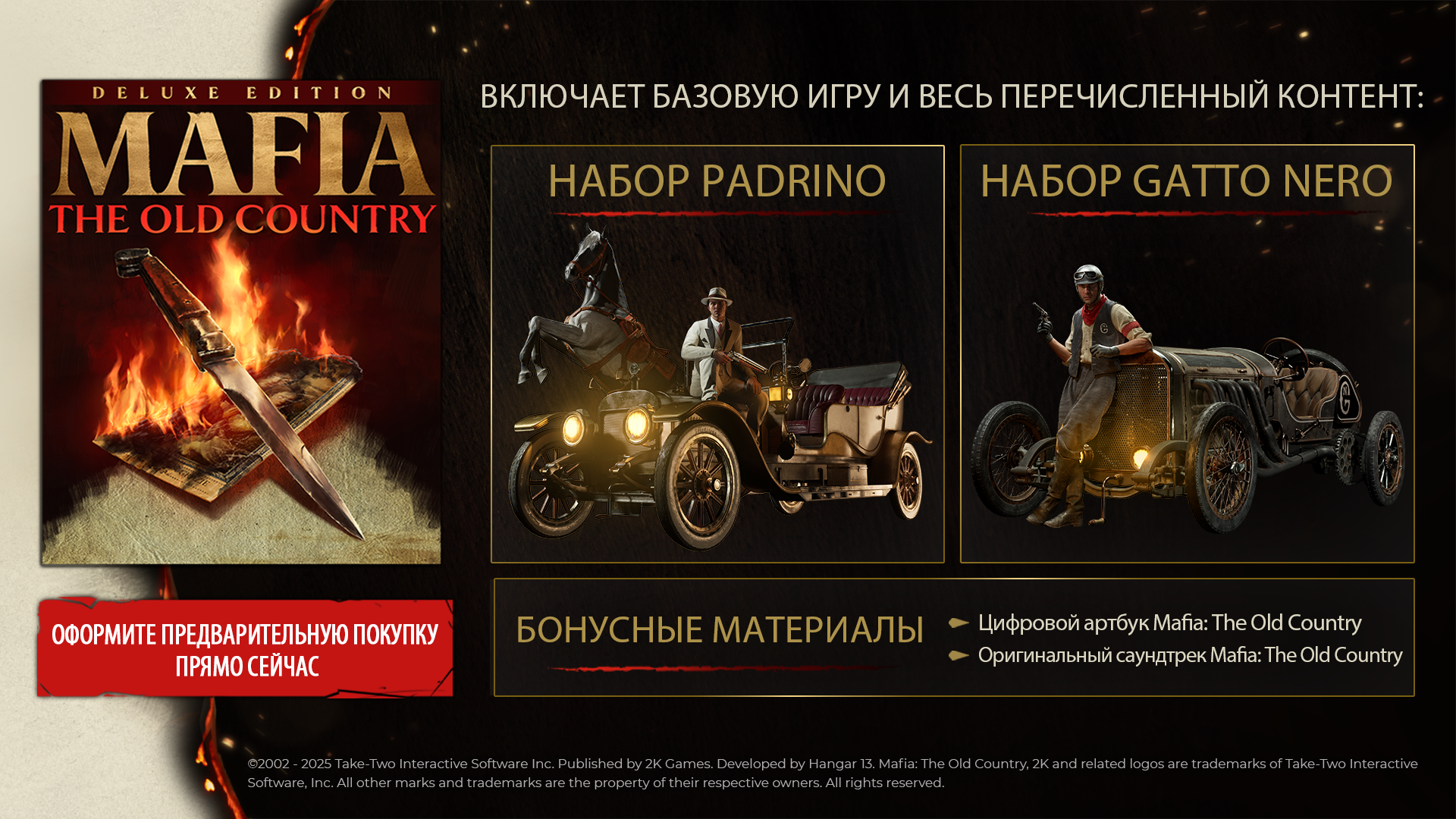 Раскройте истоки организованной преступности в Mafia: The Old Country, суровой мафиозной истории, действие которой разворачивается в жестоком преступном мире Сицилии 1900-х годов. Бейтесь за выживание в роли Энцо Фавары и докажите свою ценность для Семьи в этом захватывающем приключении в жанре боевика от третьего лица, действие которого разворачивается в опасную и беспощадную эпоху.