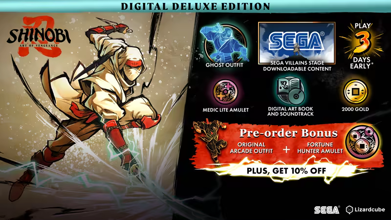 Оформите предзаказ на SHINOBI: Art of Vengeance со скидкой 10% и получите экипировку «Аркадная классика» и амулет охотника за удачей.