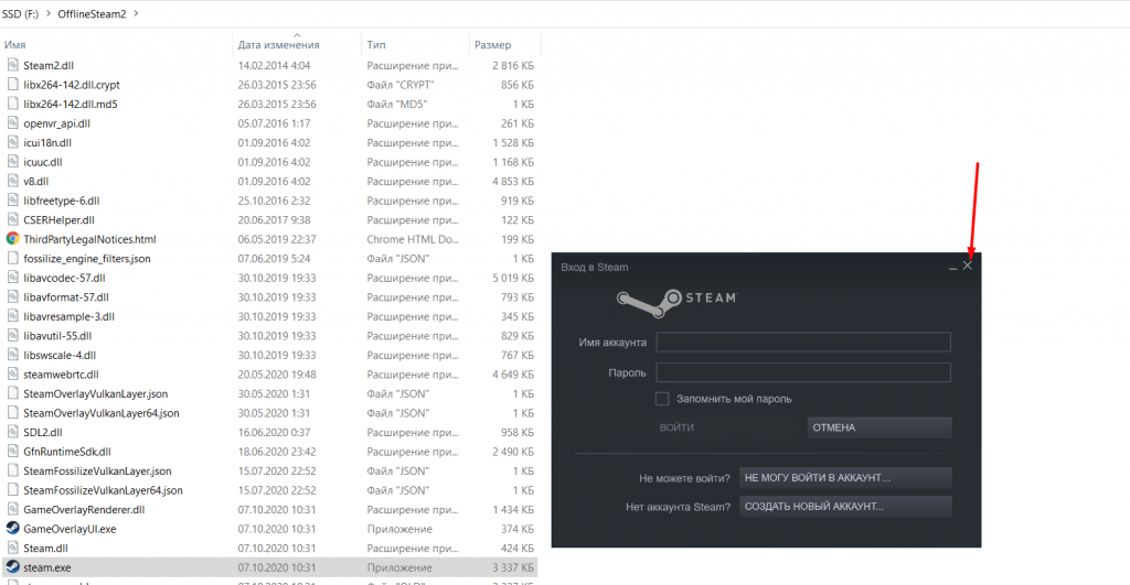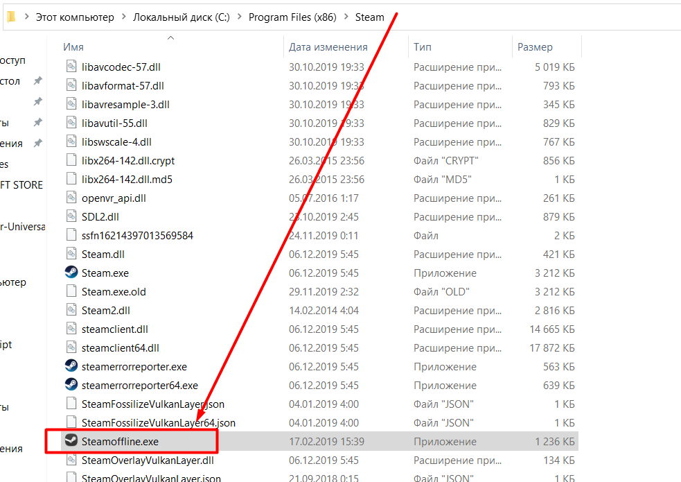 Возможные проблемы: При запуске Steamoffline.exe