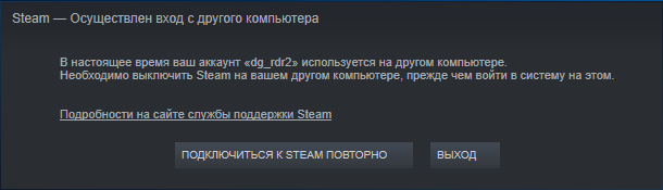 — Если при входе в аккаунт у вас появилось сообщение «В настоящее время ваш аккаунт используется на другом компьютере» нужно закрыть Steam, подождать несколько минут и повторить вход в аккаунт.