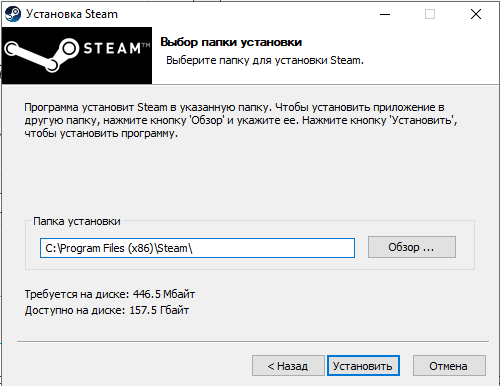 Запускаем скаченный файл: SteamSetup.exe и следуем инструкциям по установке клиента Steam.
