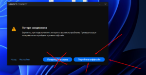 Решение?! Все делайте как выше описано, закрываете Ubisoft Connect (не путать с выйти с аккаунта) после выключаете интернет и снова запускаете Ubisoft, у вас будет выбор перейти в оффлайн, можно включать интернет.